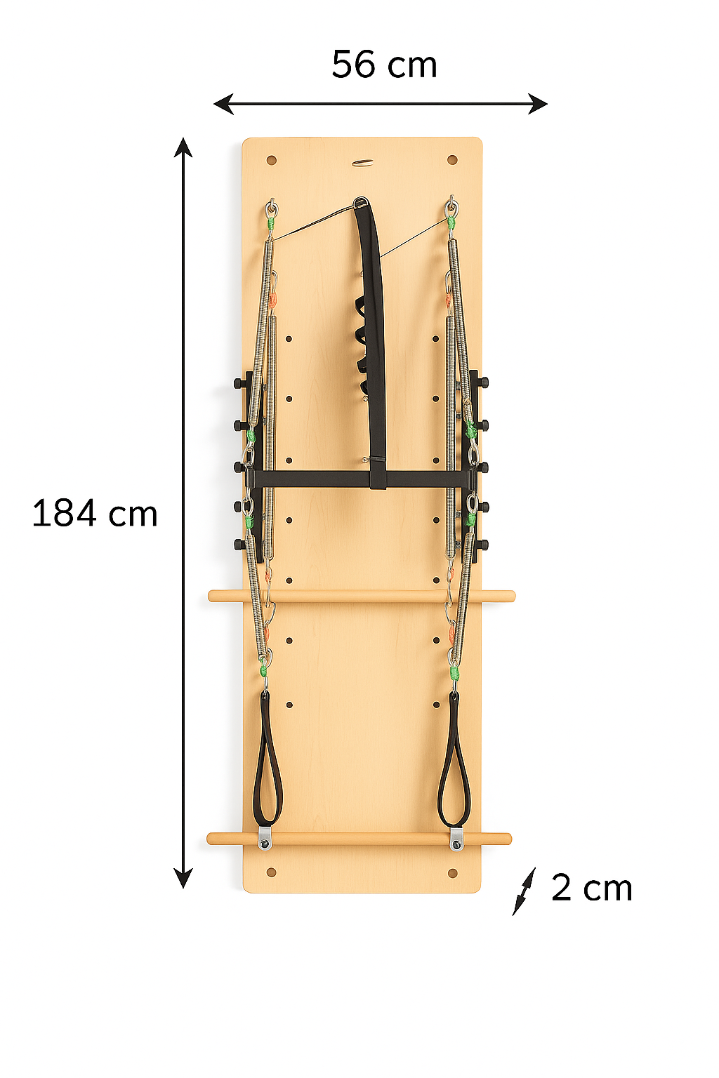 Le Wall Unit est un équipement de Pilates mural conçu pour permettre un large éventail d’exercices dans un espace réduit. Il offre différents niveaux de travail grâce à son ancrage fixe au mur et s’adapte aussi bien à la pratique débutante qu’avancée.